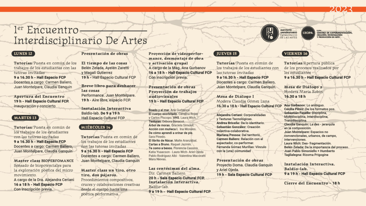 Coordinado por el licenciado Ariel Ojeda, este Primer Encuentro integra clases magistrales, intervenciones artísticas, presentación de obras y mesas de diálogo, enfocadas en el trabajo interdisciplinario. «La propuesta nuclea a más de 20 docentes-artistas de nuestra institución, cerca de 25 artistas invitadxs externxs y a unxs 40 estudiantes activxs que se sumaron en la convocatoria realizada en marzo de este año, y que desde ese momento vienen trabajando en procesos de experimentación y creación interdisciplinarios y colectivos que son abiertos al público el último día del encuentro», detalla Ojeda.
