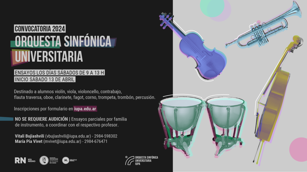 Consultas generales: Vitali Bujiashvili (vbujiashvili@iupa.edu.ar) Tel: 2984-598302 / María Pía Vivet (mvivet@iupa.edu.ar) Tel: 2984-676471 / Dpto. de Música IUPA
