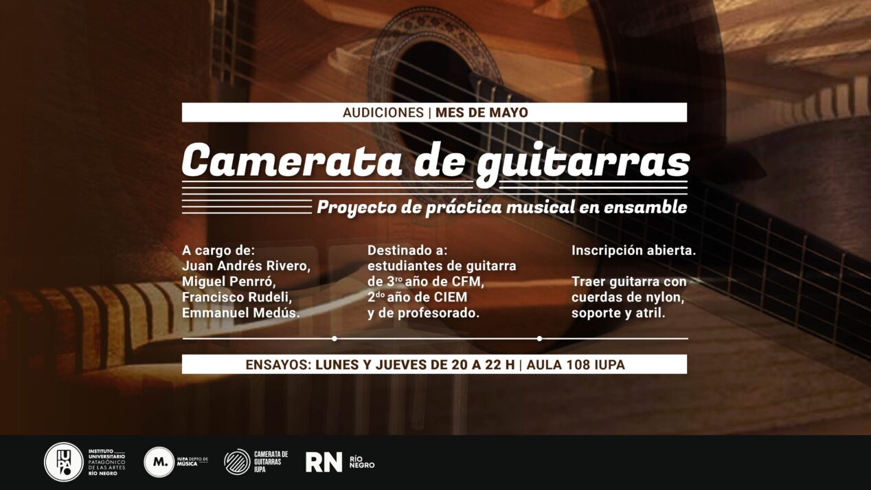 La Camerata invita a estudiantes de guitarra de IUPA a sumarse. Este ensamble está coordinado por los docentes Miguel Penrró; Juan Andrés Rivero; Emmanuel Medús y Francisco Rudeli. Este ensamble realiza, año a año, diversas presentaciones ante público.