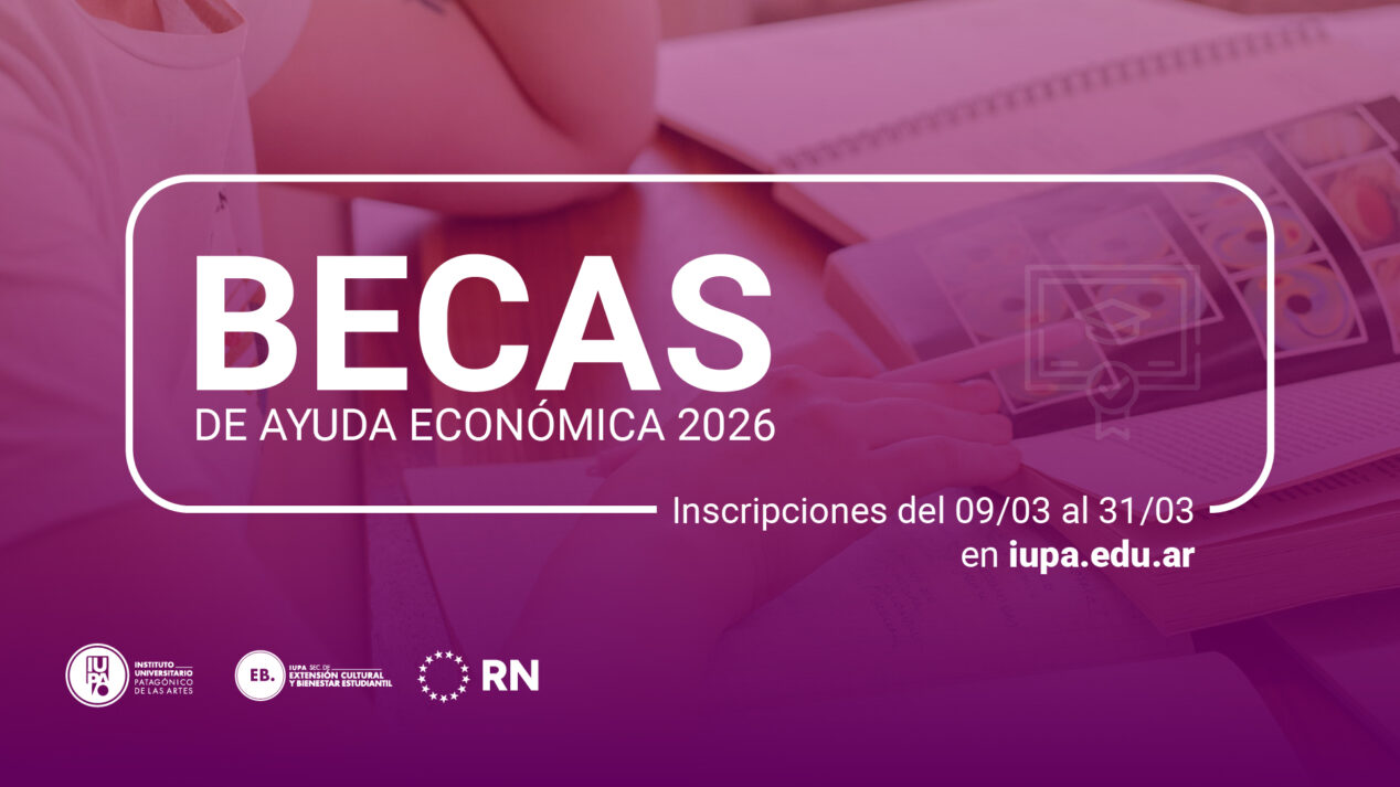 El Instituto Universitario Patagónico de las Artes informa que la inscripción a las Becas de Ayuda Económica (BAE) 2026 se realizará del 9 de marzo al 31 de marzo de 2026, tanto para estudiantes regulares como para ingresantes del ciclo lectivo 2026, según Resolución N° 80/26.