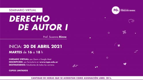 CUPOS COMPLETOS El IUPA invita a participar del seminario Derecho de Autor II, destinado a