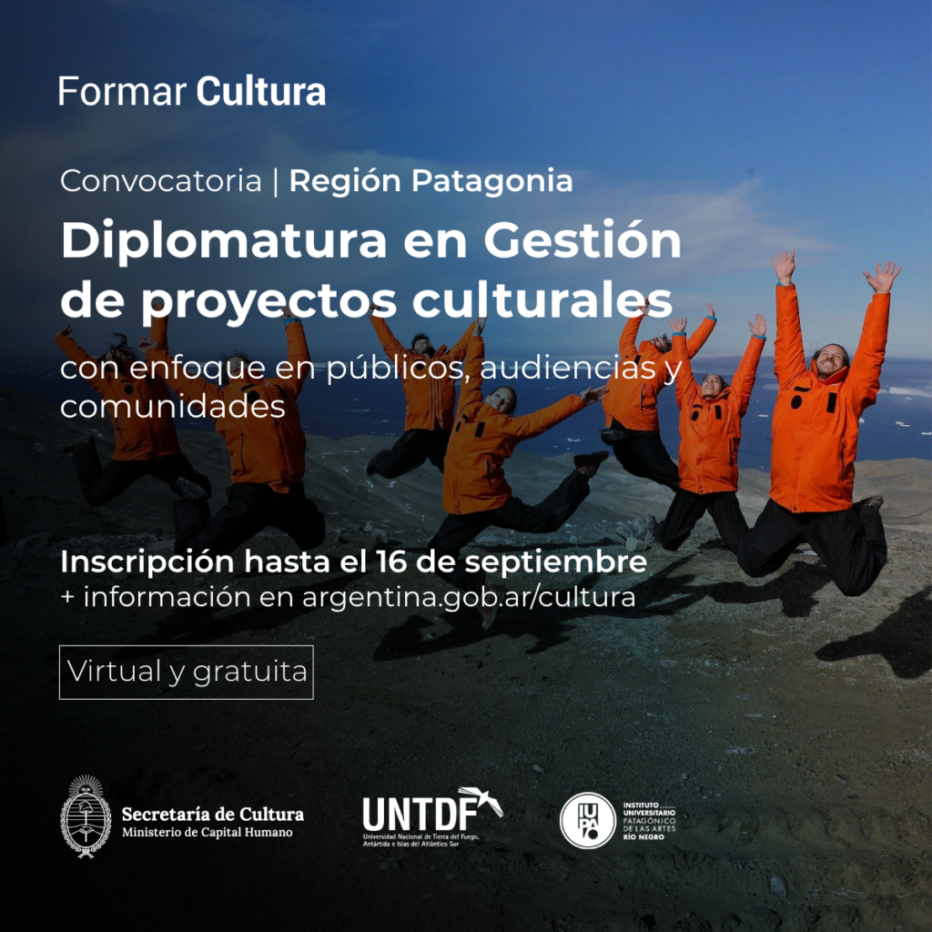La Diplomatura en Gestión de proyectos culturales con enfoque en públicos, audiencias y comunidades es una oferta académica de pregrado, organizada conjuntamente por la Secretaría de Cultura de la Nación, a través de la Subsecretaría de Promoción Artística y Cultural, el Instituto Universitario Patagónico de las Artes (IUPA) y la Universidad Nacional de Tierra del Fuego, Antártida e Islas del Atlántico Sur (UNTDF).