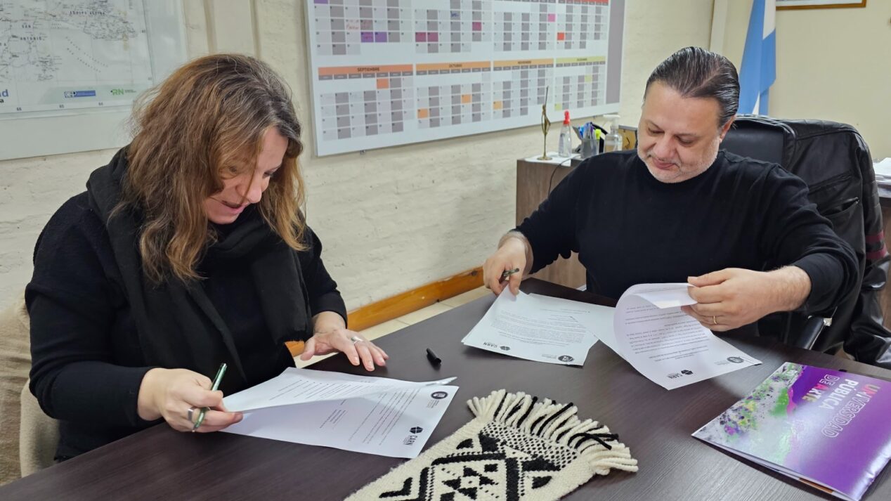 La rúbrica se hizo entre el Rector de la universidad, Armen Grigorian, y Viviana Arcos, presidenta del Colegio de Arquitectos de Río Negro (CARN) y vicepresidenta de la seccional 2, General Roca.
