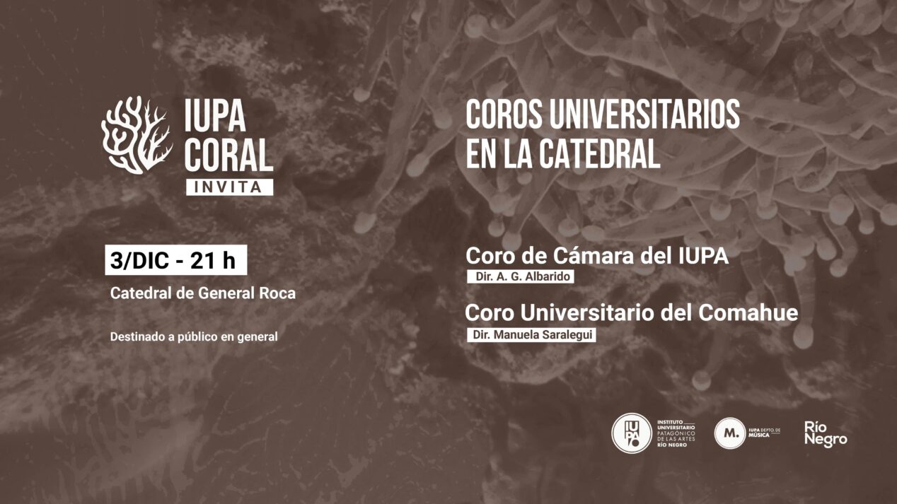 Luego de su presentación en las catedrales de Neuquén y Cipolletti, el Coro de Cámara del IUPA (Dir. A.G. Albarido) finaliza su séptima temporada en General Roca junto a un invitado de lujo, el Coro Universitario del Comahue (Dir. Manuela Saralegui).