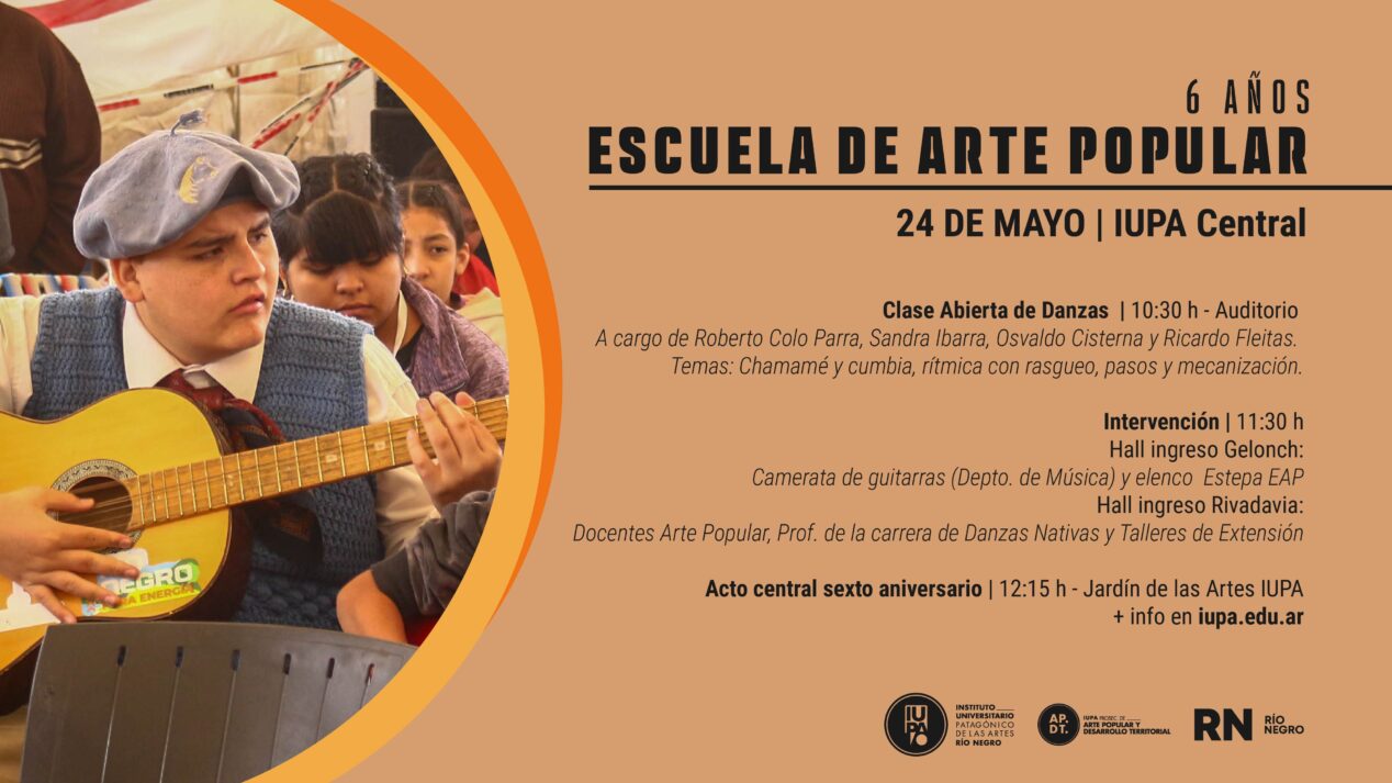 Esta iniciativa nació con el apoyo y acompañamiento del Gobierno de Río Negro, y los gobiernos locales de 72 localidades de la provincia. La EAP funciona en cada pueblo y comisión de fomento, donde se brindan cursos de danzas folclóricas y guitarra folclórica, de la mano de docentes populares avalados por IUPA, y con un programa de formación también coordinado por nuestra universidad.