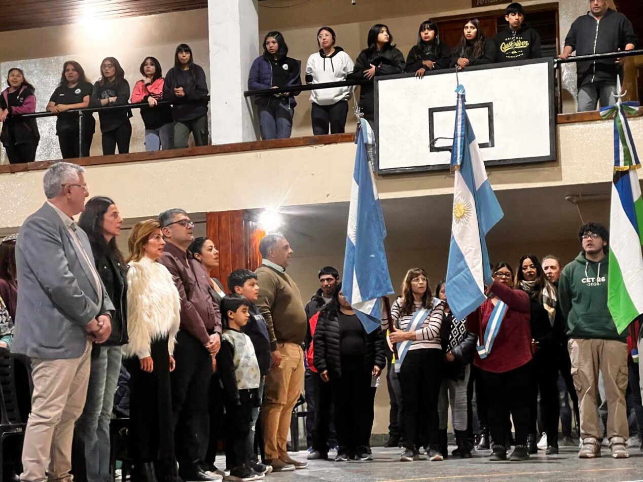el escenario con la presencia de profesores y estudiantes de Valcheta, Sierra Colorada,