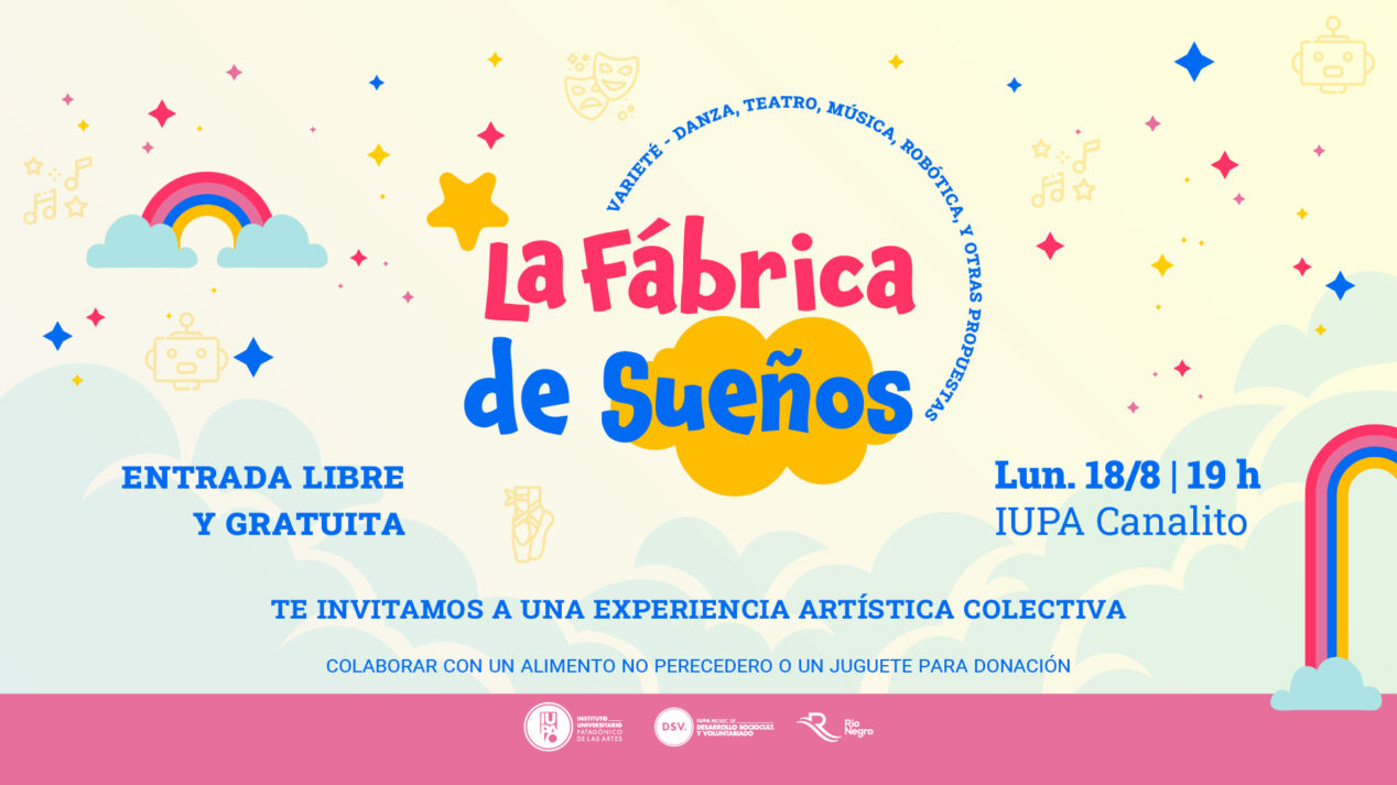 El próximo lunes 18 de agosto a las 19 h se presentará La fábrica de sueños. Vení a enterARTE, una propuesta artística interdisciplinaria desarrollada por estudiantes, docentes y personal de distintas áreas del IUPA. El evento convoca a todas las familias, en el marco del festejo del Día de las Infancias.