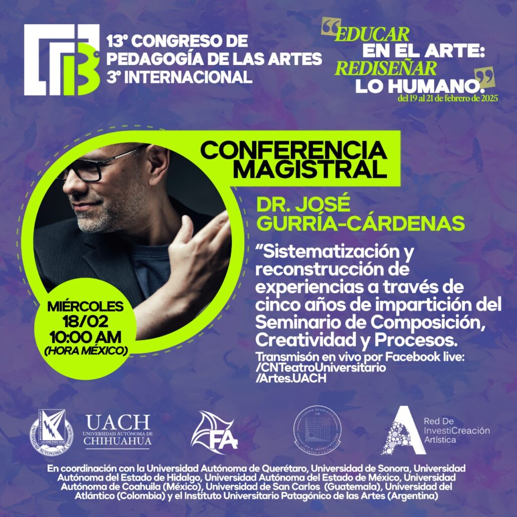 Este Congreso es organizado por la Universidad Autónoma de Chihuahua y la Red de InvestiCreación Artística, en coordinación con la Universidad Autónoma de Querétaro, Universidad de Sonora, Universidad Autónoma del Estado de Hidalgo, Universidad Autónoma del Estado de México, Universidad Autónoma de Coahuila, Universidad Veracruzana, Universidad de San Carlos de Guatemala, Universidad del Atlántico (Colombia) y el Instituto Universitario Patagónico de las Artes (Argentina).