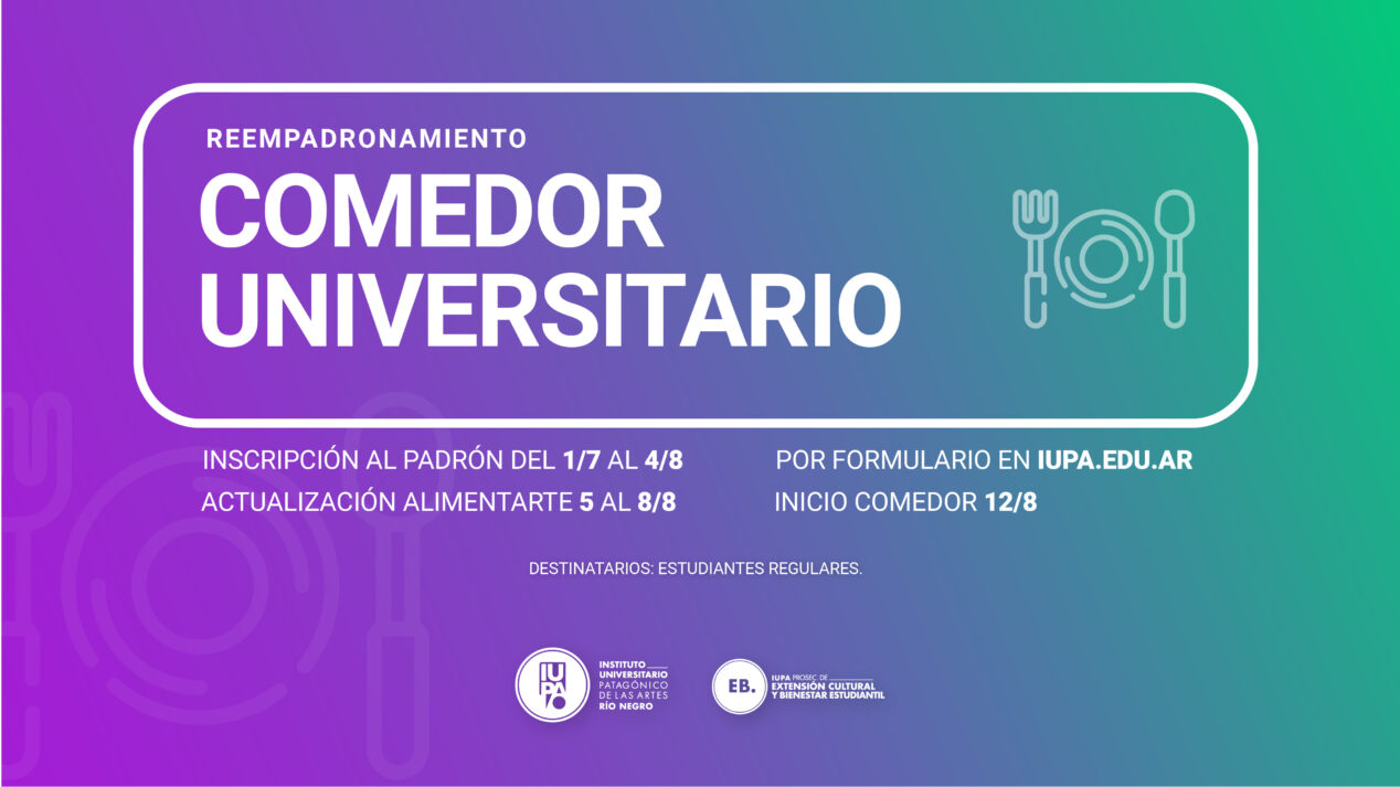 Se extendió hasta el jueves 8 de agosto, sin excepción, la inscripción al padrón para el comedor universitario. Es importante que lo hagas, porque es obligatorio para luego usar el servicio de comedor. No importa si estuviste empadronado (debés realizarlo otra vez).