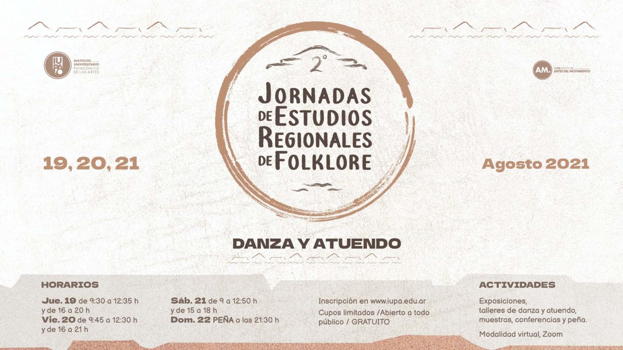 Mesas redondas, conferencias, talleres de danza y atuendo, muestras artísticas, entre otras actividades, serán las convocantes de estas Segundas Jornadas de Estudios Regionales de Folklore del IUPA, que se llevarán a cabo los días 19, 20 y 21 de agosto de 2021.