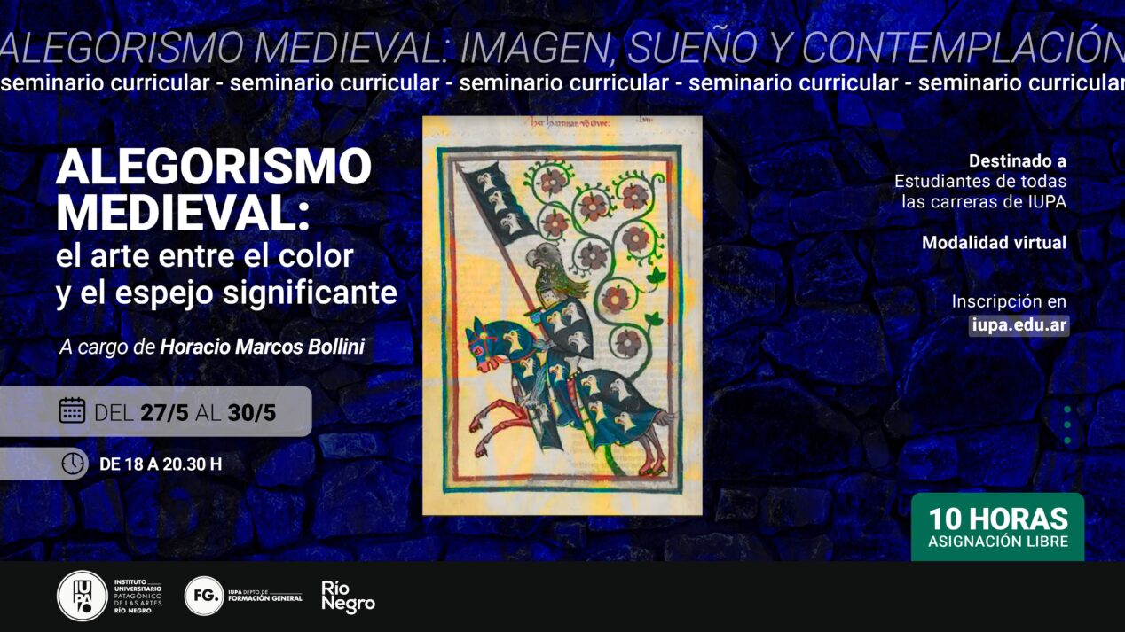 El Departamento de Formación General del IUPA presenta el seminario “Alegorismo Medieval: el arte entre el color y el espejo significante”, una propuesta formativa que invita a explorar el pensamiento simbólico y visual del Medioevo a través de una mirada interdisciplinaria sobre el arte, la filosofía y la cultura. Está a cargo del prof. Horacio Bollini.