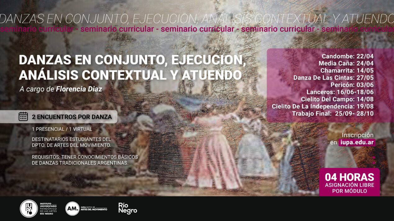 El Departamento de Artes del Movimiento del IUPA presenta una nueva propuesta destinada a estudiantes, docentes y egresados de carreras vinculadas al folklore. Se trata del seminario “Danzas en conjunto: ejecución, análisis contextual y atuendo”, un espacio diseñado para abordar diversas danzas folklóricas argentinas desde una mirada integral que articula lo técnico, lo histórico y lo estético.
