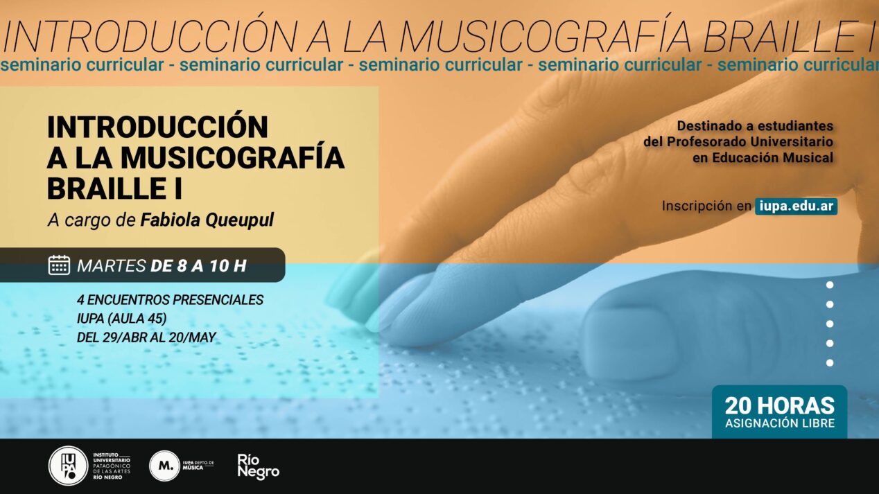 Introducción a la Musicografía Braille I está a cargo de nuestra docente Fabiola Queupul, y se extenderá durante cuatro clases entre abril y mayo. Está diseñado para personas formadoras en lenguaje musical sin discapacidad visual, es decir que la propuesta se basa en la visión para