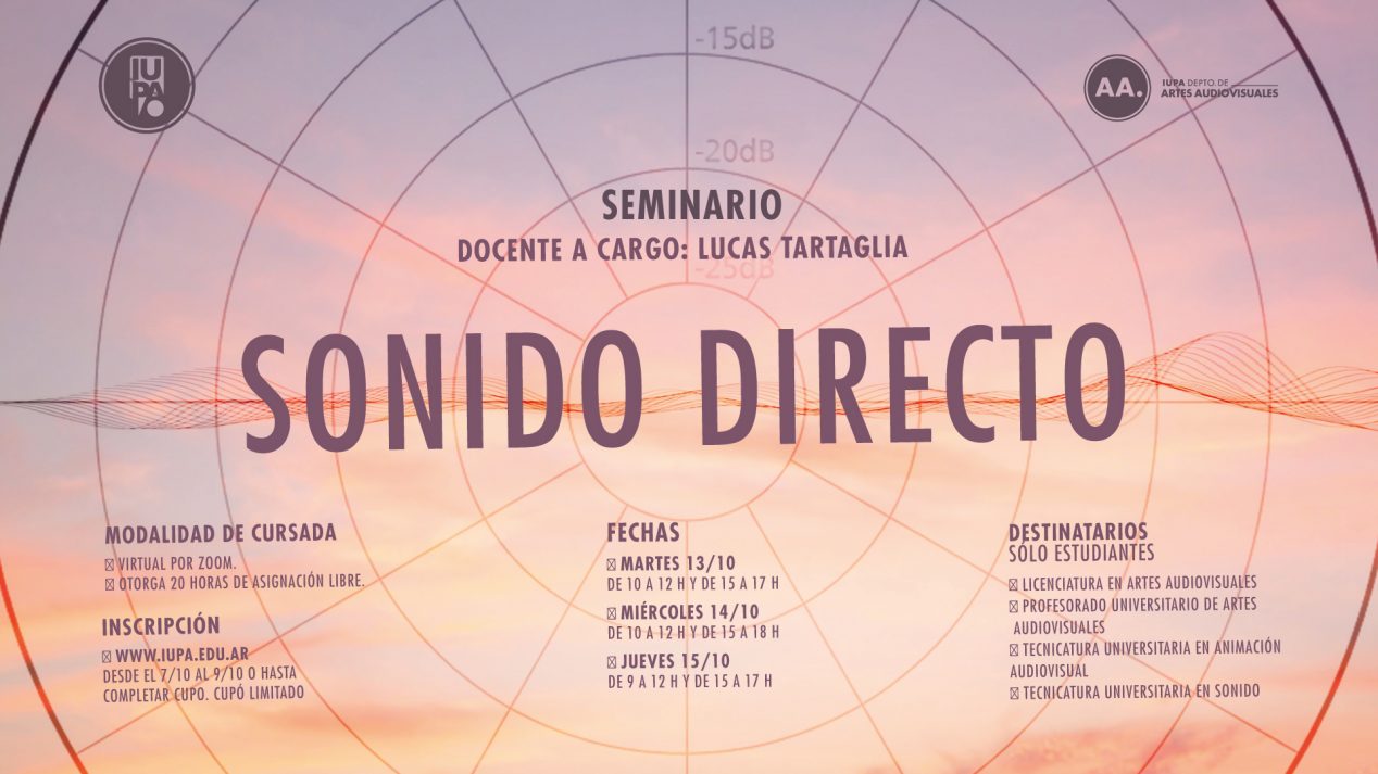 El egresado de IUPA Lucas Tartaglia brindará este seminario de Sonido, destinado a estudiantes de Artes Audiovisuales (Licenciatura, Profesorado, Tecnicatura en Sonido, Tecnicatura en Animación Audiovisual).