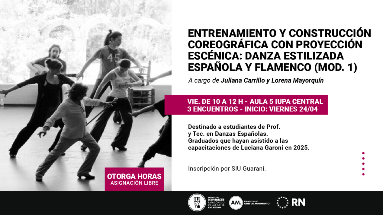 Entrenamiento y construcción coreográfica con proyección escénica: danza estilizada española y flamenco está dirigido a estudiantes del Profesorado Universitario de Danzas Españolas y de la Tecnicatura Universitaria en Danzas Españolas, así como a graduados que hayan participado de las capacitaciones 2025 dictadas por la Prof. Luciana Garoni.