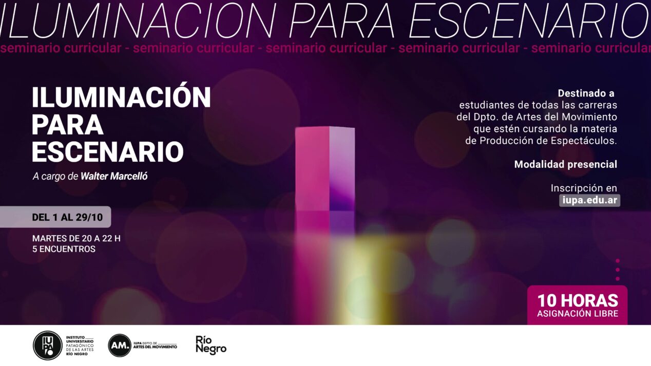 Durante cinco encuentros, el docente Walter Marcelló brindará este seminario de Iluminación para escenario, una propuesta de asignación libre destinada a estudiantes de todas las carreras de Artes del Movimiento que estén cursando la materia Producción de espectáculos.