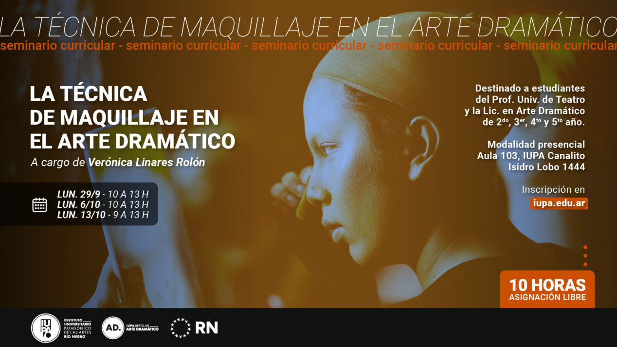 El IUPA invita a participar del seminario La Técnica de Maquillaje en el Arte Dramático, a cargo de la docente Verónica Linares Rolón. Está destinado a estudiantes del Profesorado Universitario de Teatro y de la Licenciatura en Arte Dramático (2º a 5º año).