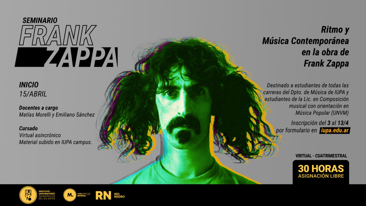 También a cargo de los docentes Matías Morelli y Emiliano Sánchez, Ritmo y Música Contemporánea en la obra de Frank Zappa, este seminario es virtual y asincrónico, y durará un cuatrimestre.