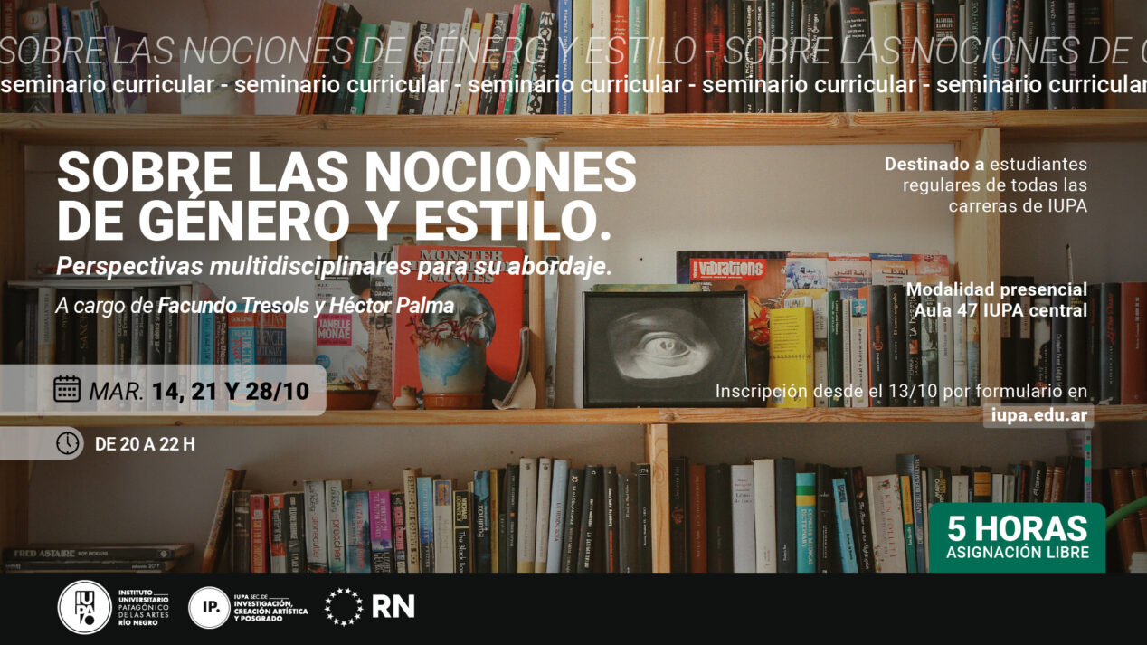 Están abiertas las inscripciones para el seminario Sobre las nociones de género y estilo. Perspectivas multidisciplinares para su abordaje, que se realizará los martes 14, 21 y 28 de octubre de 20 a 22 h, en el Aula 47 de IUPA Central.