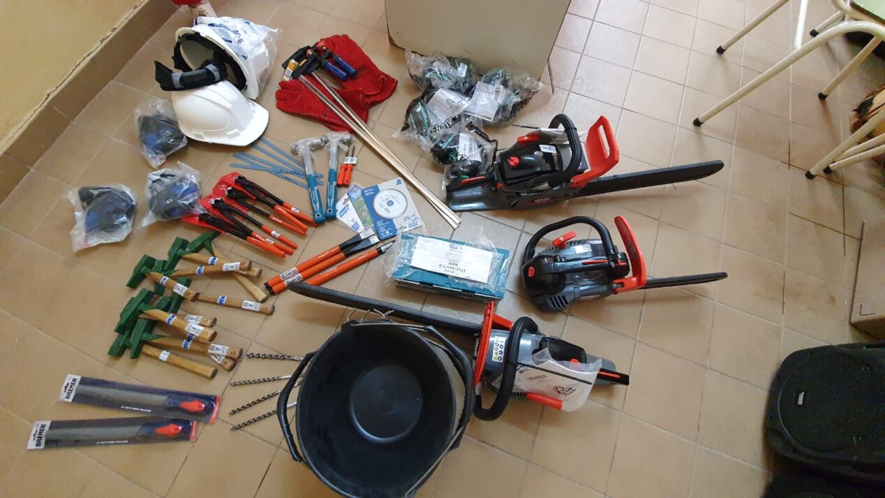 Así, mediante licitación se adquirieron tres motosierras de distintas medidas; una amoladora nueva y muchos elementos de protección como guantes para soldar, protectores auditivos, máscara de gases y elementos chicos, cortafierros, tenazas, destornilladores, etcétera.