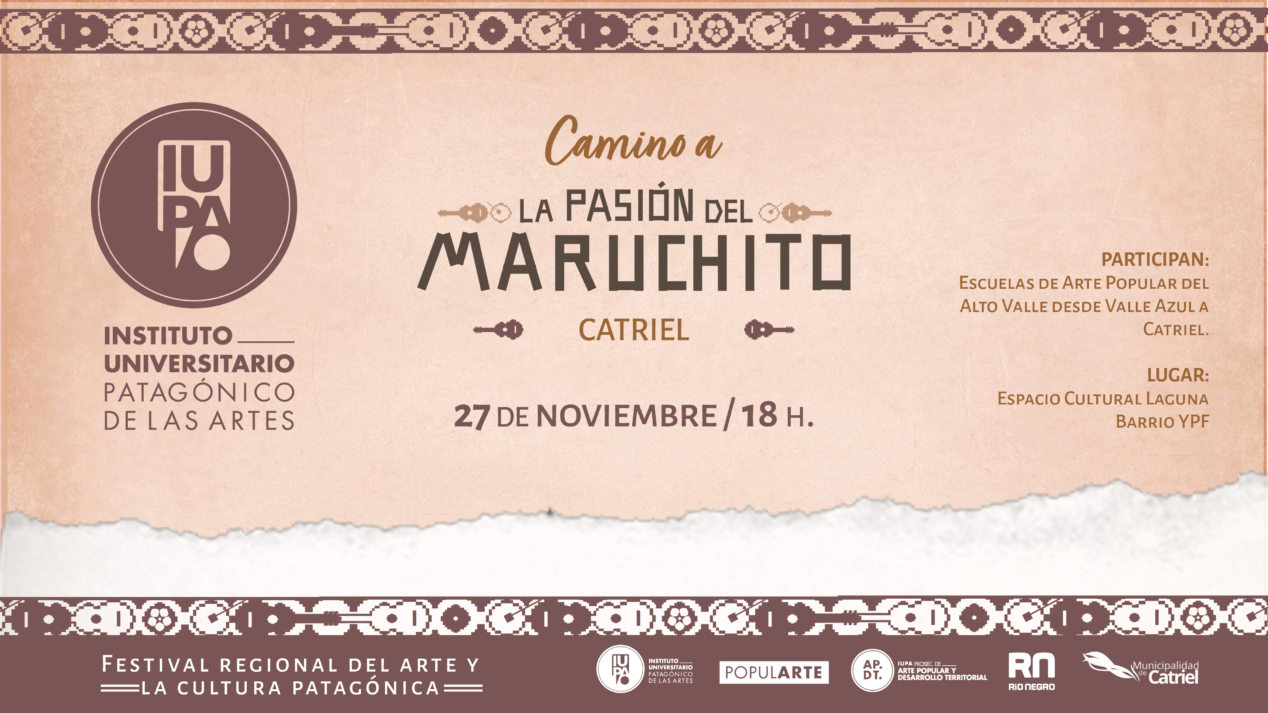 El sábado 27 de noviembre, la ciudad de Catriel reunirá a decenas de artistas populares: Camino a la Pasión del Maruchito, organizado por la Prosecretaría de Arte Popular y Desarrollo Territorial, convocará a docentes y estudiantes de Escuelas de Arte Popular de todo el Valle, desde Valle Azul hasta la ciudad anfitriona.