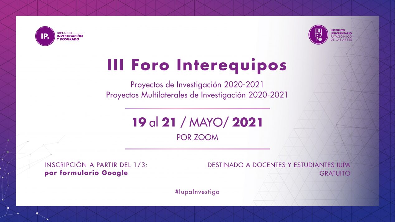 La Secretaría de Investigación y Posgrado prepara el III Foro Interequipos, que se realizará del 19 al 21 de mayo del 2021 y reunirá especialmente a la comunidad de docentes-investigadores con el doble propósito de exhibir los avances de Proyectos de Investigación 2020-2021 y Proyectos Multilaterales de Investigación 2020-2021, y de conocer desarrollos afines entre los colegas de la Casa.