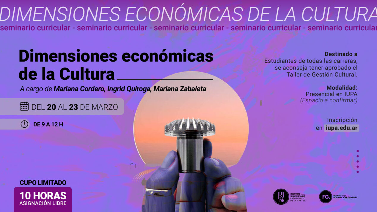 Dimensiones económicas de la cultura es un seminario intensivo de tres jornadas, presenciales, dictado por las docentes Ingrid Quiroga, Mariana Zabaleta y Mariana Cordero.