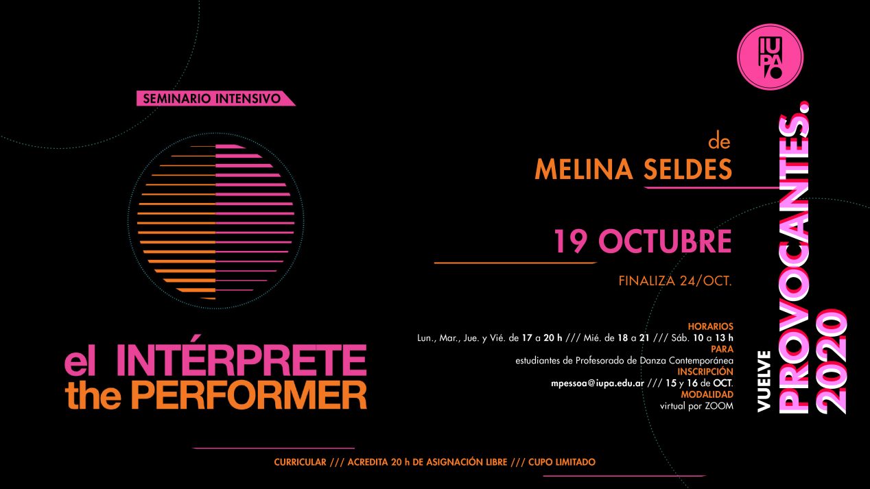 La artista escénica e investigadora de movimiento Melina Seldes brindará este seminario de asignación libre titulado El Intérprete_The Perfomer  intensivo en octubre.