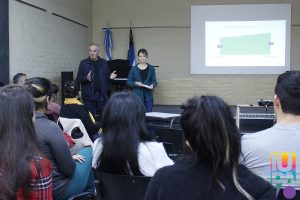La directora del Departamento de Artes Visuales del IUPA, Cecilia Guaragna, recibió y firmó una