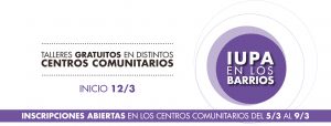 Continúan abiertas algunas inscripciones para nuestros talleres IUPA en los barrios. Se trata del