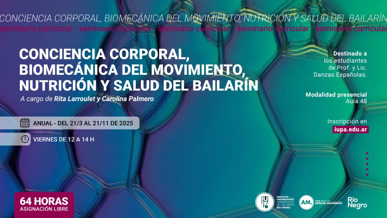 Se abren las inscripciones para el Taller de Conciencia Corporal, Biomecánica del Movimiento, Nutrición y Salud del Bailarín, una propuesta formativa dirigida a estudiantes del Profesorado Universitario de Danzas Españolas y la Tecnicatura Universitaria en Danzas Españolas.