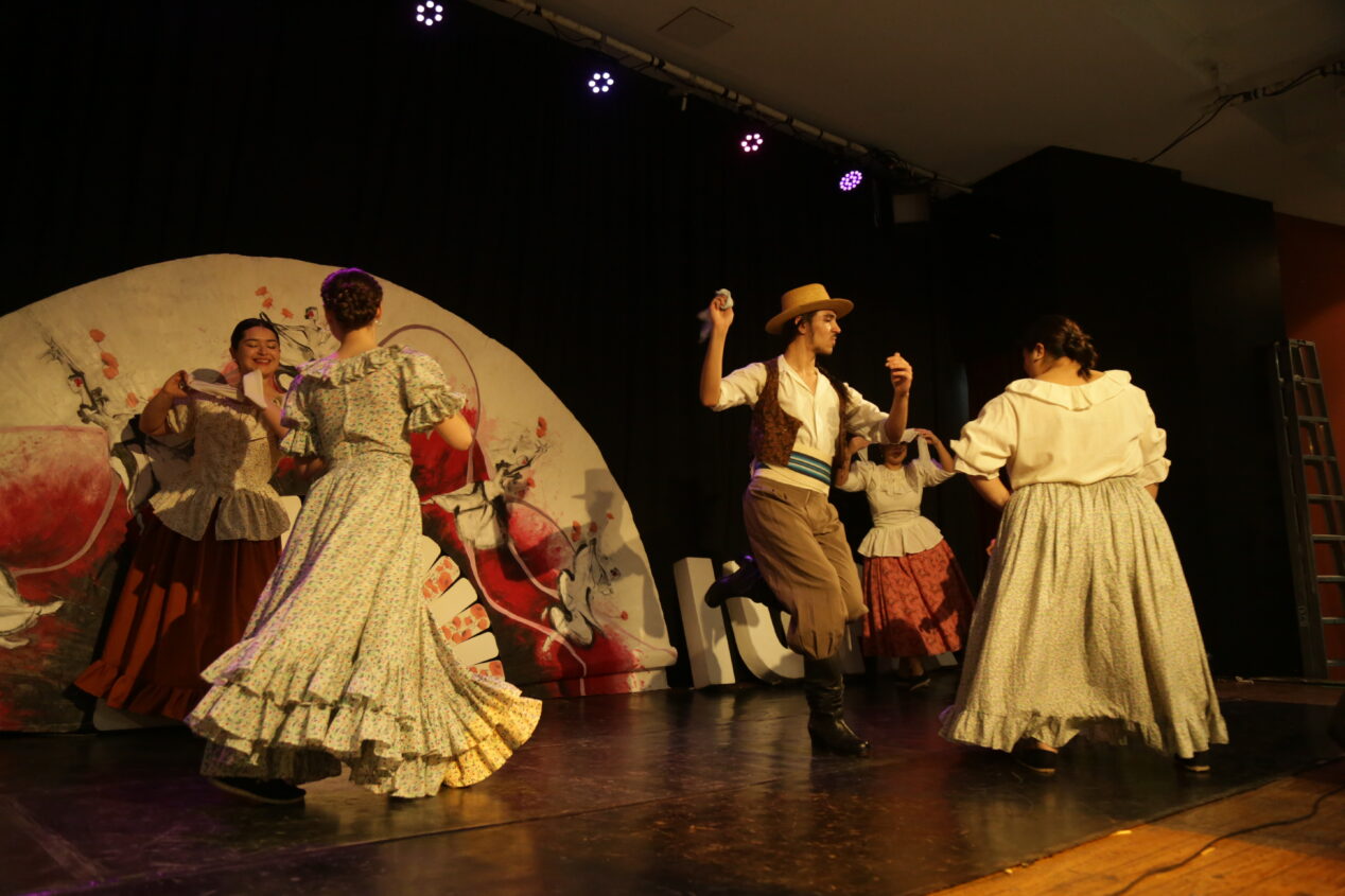 El salón principal de la Española albergó los stands y el escenario principal, donde se mostraron, en distintos momentos de la jornada, espectáculos de danza, música. Además, entre los pasillos y para la sorpresa de los visitantes, hubo intervenciones teatrales.