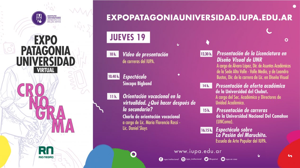 El cronograma completo, los espectáculos artísticos y stands se podrán disfrutar en el micrositio expopatagoniauniversidad.iupa.edu.ar