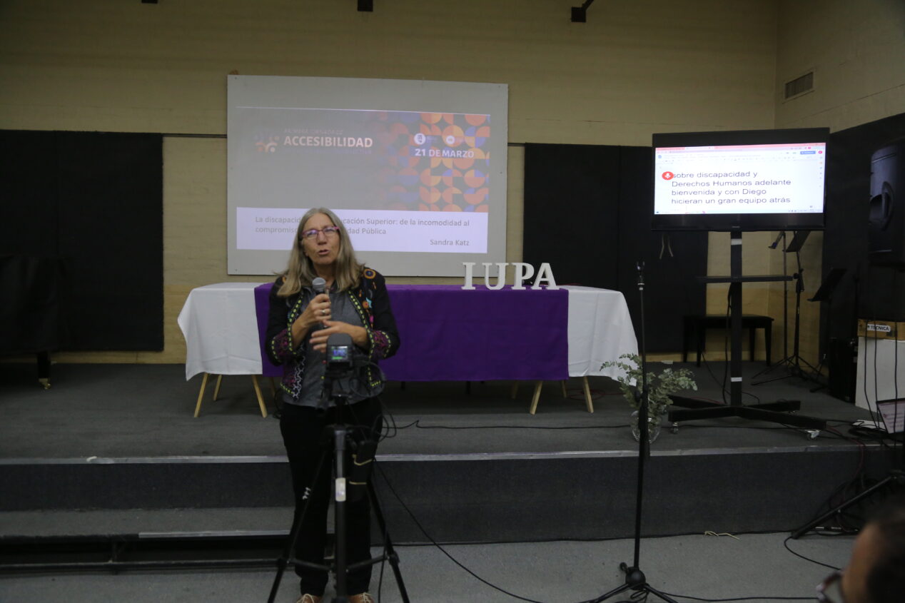Hubo, además, dos conferencias generales a cargo de expertas. Sandra Katz, docente investigadora de la Universidad Nacional de La Plata, e integrante de la Red Interuniversitaria de Latinoamérica y Caribe sobre Discapacidad y Derechos Humanos, disertó sobre La discapacidad en la Educación Superior: de la incomodidad al compromiso de la Universidad Pública.