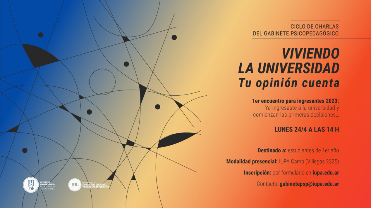 Pensado para estudiantes ingresantes (primer año de todas las carreras), inicia “Viviendo la universidad” Tu opinión cuenta, la primera charla de un ciclo organizado por el equipo de Gabinete de Apoyo Psicopedagógico IUPA.